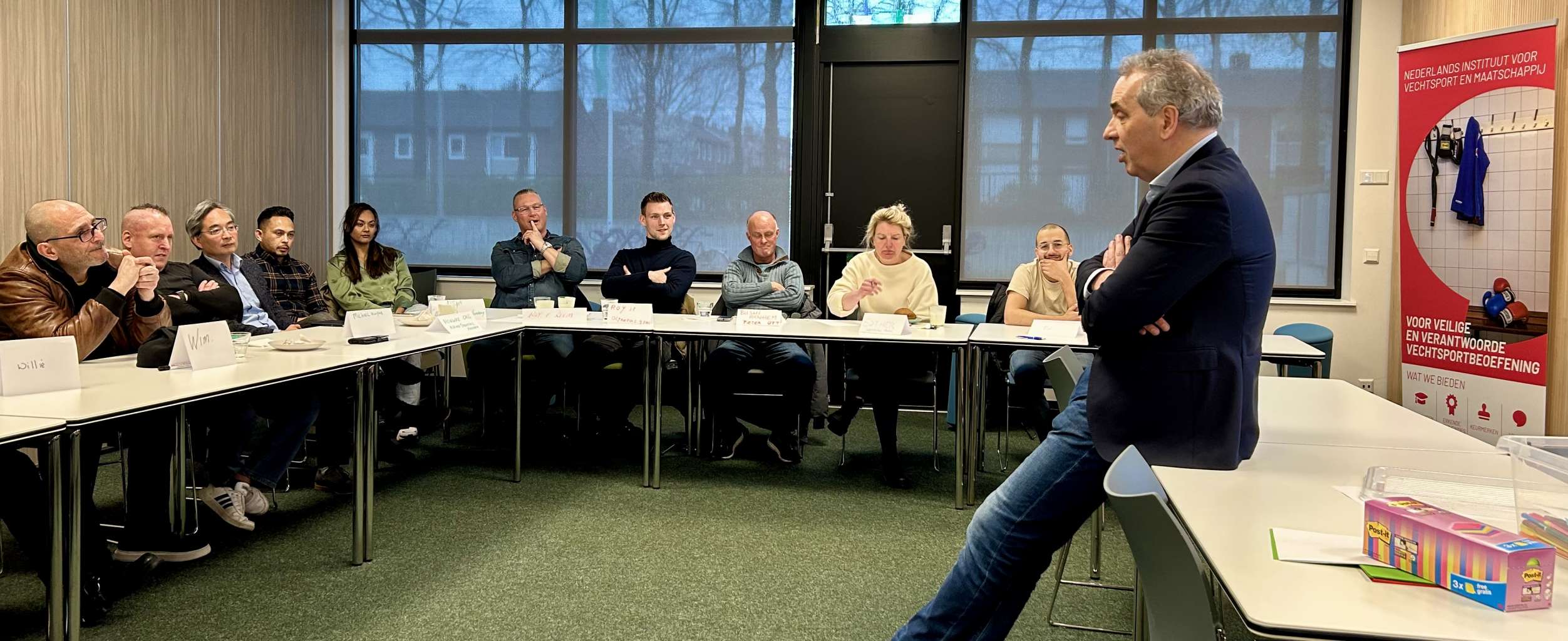 Afgelopen week was er de eerste bijeenkomst van Arnhemse vechtsportaanbieders als onderdeel van het nieuwe vechtsportprogramma die dit jaar uitgevoerd wordt met 14 vechtsportaanbieders. Het NIVM mag in dit traject een mooie ondersteunende rol spelen en trad dan ook op als mede sessieleider deze avond. Op sportpark Valkenhuizen kwamen onder andere wethouder Sport Bob Roelofs, een brede vertegenwoordiging van het Sportbedrijf Arnhem en een mooie afvaardiging van de Arnhemse vechtsportorganisaties bijeen. De avond stond in het teken van het kennismaken met de wethouder en vechtsport. Door met elkaar te bespreken wat voor groot en gevarieerd vechtsportaanbod er in de stad is, te horen hoe de trainers in hun sport staan, samen te kijken naar de pedagogische kracht van de sport en hoe er nog meer samengewerkt kan worden. De Pedagogische Wijk is in de gemeente één van de focuspunten van het huidige beleidsprogramma en in samenwerking met de vechtsport kan daar een mooie bijdrage aan geleverd worden. Maar er is veel meer waar aan gewerkt kan worden.