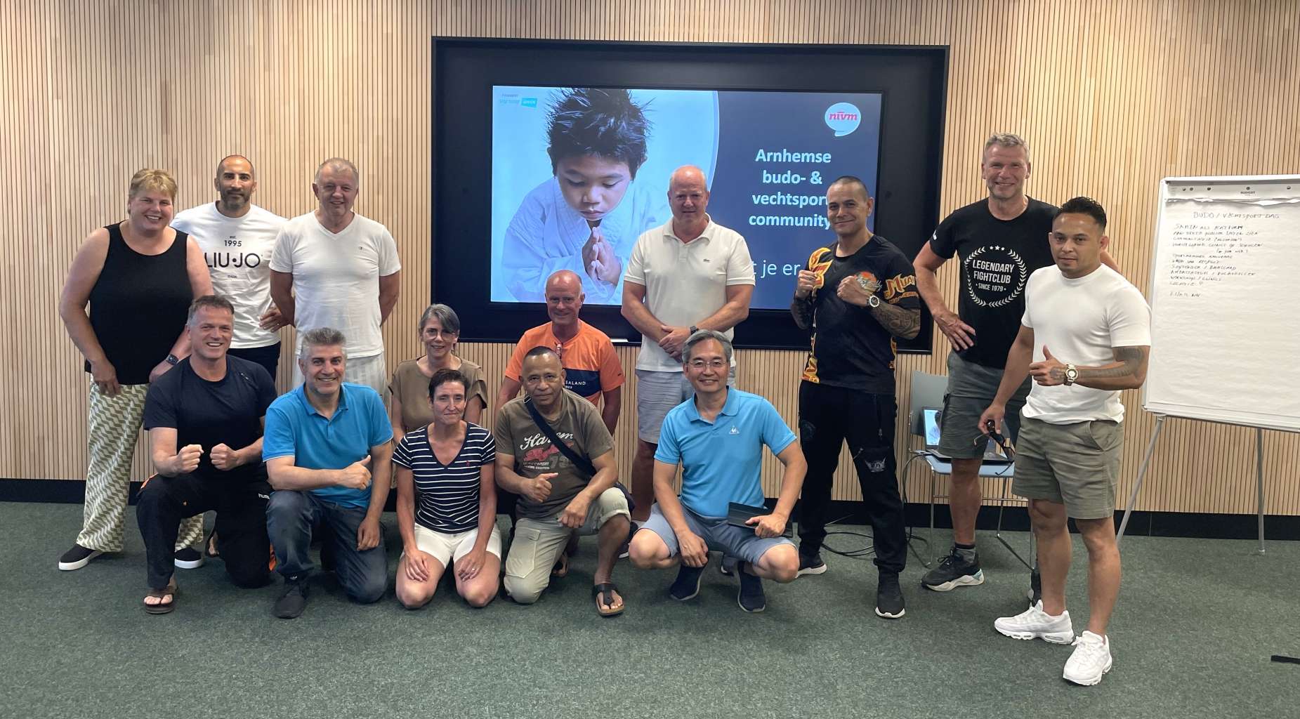 In Arnhem zijn we samen met de gemeente Arnhem, het Sportbedrijf Arnhem en de 14 clubs een community aan het vormen. Een samenwerkingsverband, waarbij er een netwerk wordt gevormd dat samen gaat werken rondom actuele onderwerpen die vanuit het netwerk zelf worden bepaald. De clubs komen allemaal uit de praktijk waar enorm veel kennis en ervaring zit. Maar liefst 15 vertegenwoordigers van diverse Arnhemse clubs gingen op sportpark Valkenhuizen met elkaar in gesprek over welke onderwerpen in hun ogen belangrijk zijn om gezamenlijk op te pakken. Kennis uitwisselen, samenwerken en beter zichtbaar worden als vecht- en budosport aanbieders waren items die ter sprake kwamen. Op naar de volgende community bijeenkomst waarin we samen gaan nadenken over een gezamenlijk event rondom vecht- en budosport in Arnhem!