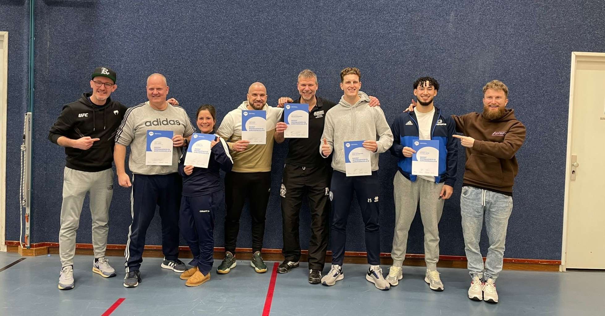 Vechtsport kan een heel krachtig pedagogisch instrument zijn als het op de juiste wijze wordt ingezet. Vanuit die hoedanigheid kan vechtsport een mooie maatschappelijke rol spelen als het gaat om het aanpakken van problemen. Met een deel van de clubs uit het Vecht- en Budosport Collectief Arnhem willen we vooral werken aan die maatschappelijke plus; het bereiken van ‘lastige’ doelgroepen, themagericht aanbod en de samenwerking met partners in het sociale domein versterken. Kickboxing Arnhem, Gouken Dojo en Riverside Sports & Coaching zijn hier al een tijd mee bezig en hebben nu ook extra pedagogische slagkracht in de club. Drie trainers behaalden deze week hun diploma van de 8-daagse opleiding tot docent Weerbaarheid en Agressieregulatie. Een hele mooie prestatie!