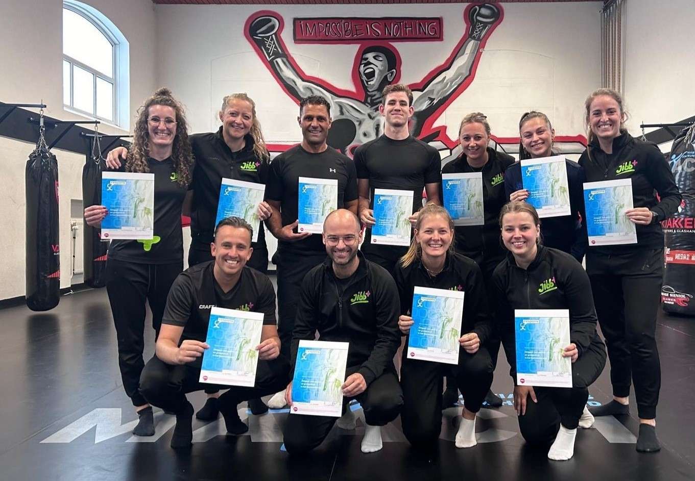 Respons is een interventie die we gemakkelijk kunnen overdragen. Zo heeft het team van Jibb+ in vier dagdelen leren werken met de module ‘Omgaan met pesten en groepsdruk’. Het lesprogramma wat hierbij hoort, bestaat uit zeven uitgewerkte lessen van 50 – 60 minuten. Ideaal dus om te verzorgen binnen de gymles. ‘Veel scholen in Helmond vragen Respons aan als onderdeel van het jaarrooster en we zien wat het kan betekenen voor de groepsdynamiek’, aldus Ilse Lahaije buurtsportcoach Opvang en onderwijs bij Jibb+. ‘De cursus zelf kende een mooie afwisseling tussen theorie en praktijk. Fijn dat we nu weer onze licentie hebben verlengd met drie jaar en we allemaal nieuwe werkvormen en inzichten over de problematieke rondom pesten en groepsdruk hebben gekregen. Dat onze oud-collega Chaib el Maach, die ook docent binnen het NIVM is, de cursus gaf in zijn eigen sportschool, was natuurlijk extra leuk’.