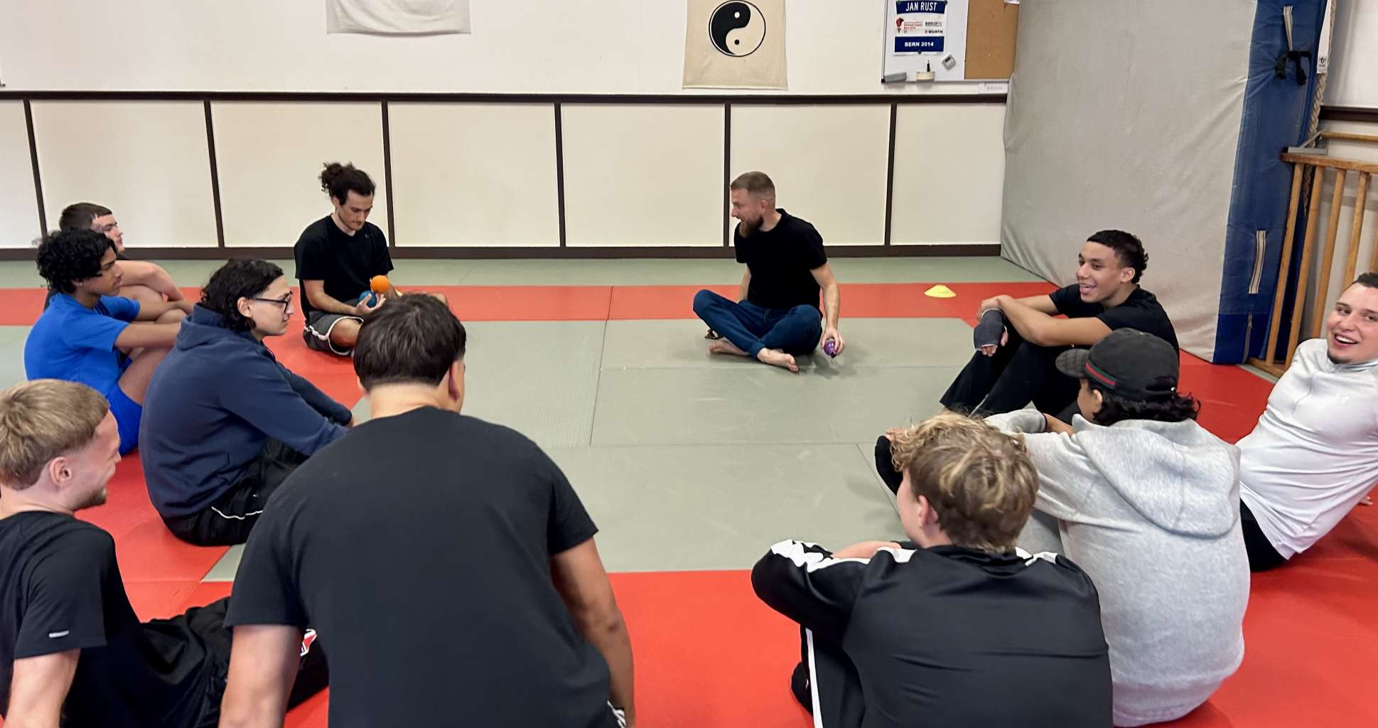 Een mooie groep jongeren hadden zich deze zondagmiddag gemeld in de dojo van Sportcentrum Jan Rust. Docent van dit traject, zowel in Den Haag als Arnhem, is Djimmy Buisman. Hij startte de cursus gelijk met praktijk aan de hand van een voorbeeld les. In deze training zaten een paar 'haakjes' die in de gehele MDT cursus van drie dagdelen worden behandeld. Zo kreeg de rol van de trainer een plek via o.a. authentiek zijn, passie uitstralen en de instruerende rol versus de coachende rol versus de observerende rol. Ook sportplezier, via FUNdamentals vormen, kwam aan bod en als laatste de overtuiging dat vechtsport meer is dan alleen een technische vaardigheid, waarbij de waarde van de pedagogische boodschap een praktische plek kreeg.