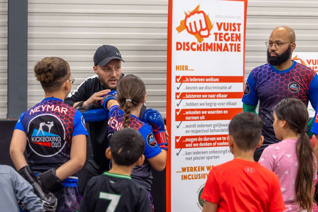 De interactieve clinics — van kickboksen tot hapkido, karate en BJJ — trokken veel enthousiasme. Kinderen en leden oefenden samen, ouders keken mee en er ontstonden natuurlijke gesprekken tussen buurtbewoners, sporters en professionals. De middag werd afgesloten met een gezamenlijk statement van de clubs en partners: ‘Wij staan samen achter het project Vuist tegen Discriminatie en zetten ons in voor een inclusieve, veilige en respectvolle sportomgeving voor iedereen.’